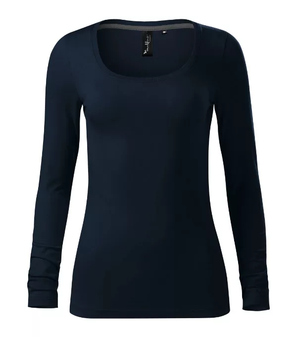 sztreccs anyag, jobb formatartástesthezálló szabás, oldalvarrássalmélyebb, kerek nyakkivágás1:1 bordás kötésű keskeny nyakszegély 5 % elasztánnala belső nyakrészen eltérő színű szalagmegerősített vállpánthosszú ujjú