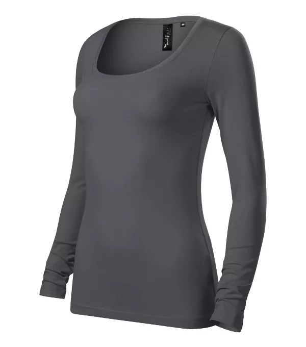 sztreccs anyag, jobb formatartástesthezálló szabás, oldalvarrássalmélyebb, kerek nyakkivágás1:1 bordás kötésű keskeny nyakszegély 5 % elasztánnala belső nyakrészen eltérő színű szalagmegerősített vállpánthosszú ujjú