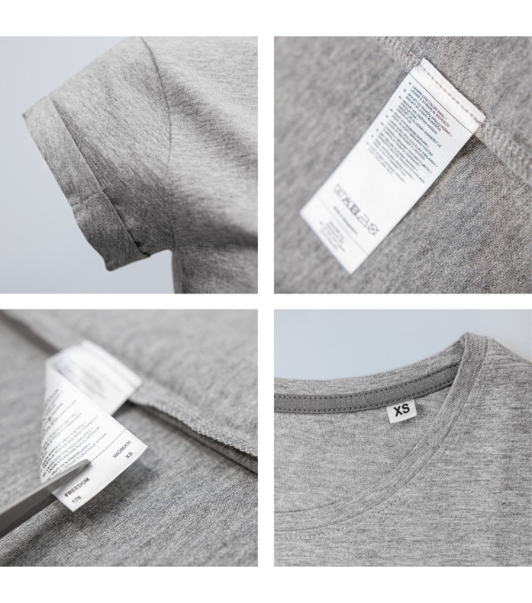címkementes - egyedileg márkázhatólaza, enyhén karcsúsított formatérd feletti hosszúságmélyebb, kerek nyakkivágáskeskeny nyakkivágás saját anyagával szegélyezve 5 % elasztánnalméretcímke természetes anyagból a hátsó nyakrészenhátsó nyakszegély belső oldalán 36 színű szalagváll vállszalaggal megerősítvefelhajtott ujjak, 4 ponton rögzítve