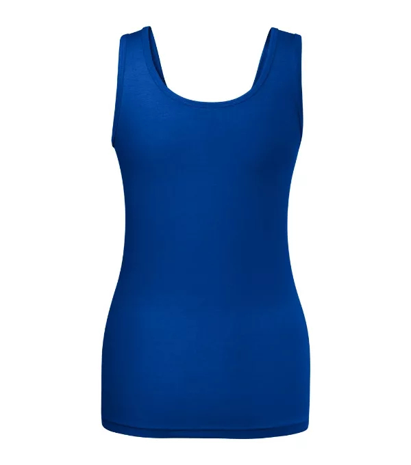 sztreccs anyag, jobb formatartástesthezálló szabás, oldalvarrássalmélyebb, kerek nyakkivágásnyak- és ujjkivágása saját anyagával szegélyezveszélesebb pántok