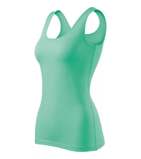 sztreccs anyag, jobb formatartástesthezálló szabás, oldalvarrássalmélyebb, kerek nyakkivágásnyak- és ujjkivágása saját anyagával szegélyezveszélesebb pántok